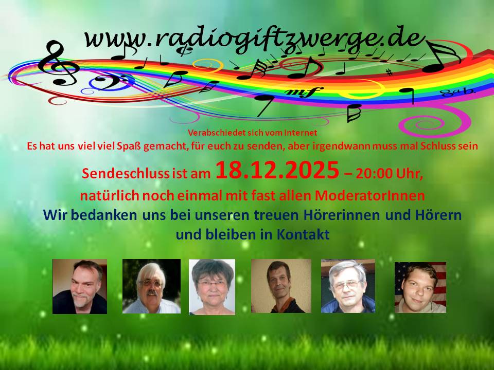 Halli Hallo, tja, gesundheitsbedingt und auch ferienbedingt machen wir eine längere Pause bei den Giftzwergen. Die schulferien dauern 6 Wochen, diese Zeit nehmen wir uns nun auch. Aber wir sind nicht weg vom Fenster - wir kommen wieder: am 02.09.2025 geht es wieder los in unserem Programm. Bis dahin genießt die Ferien und bleibt vor allem gesund (oder werdet es)! Liebe Grüße - Eure Berry